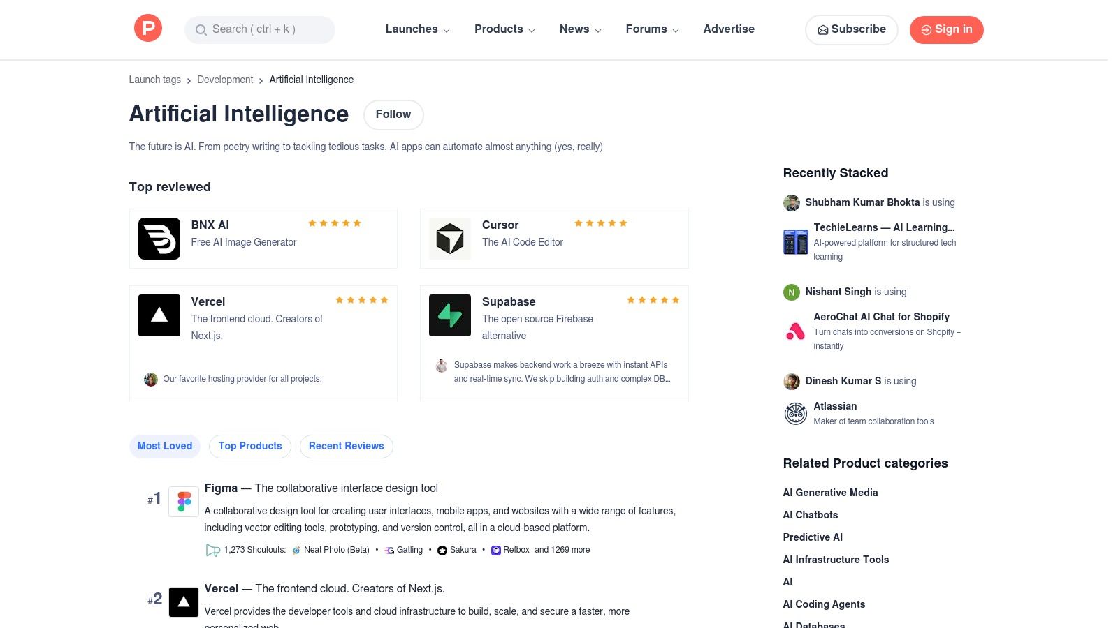 Check it out here: Product Hunt AI Topic