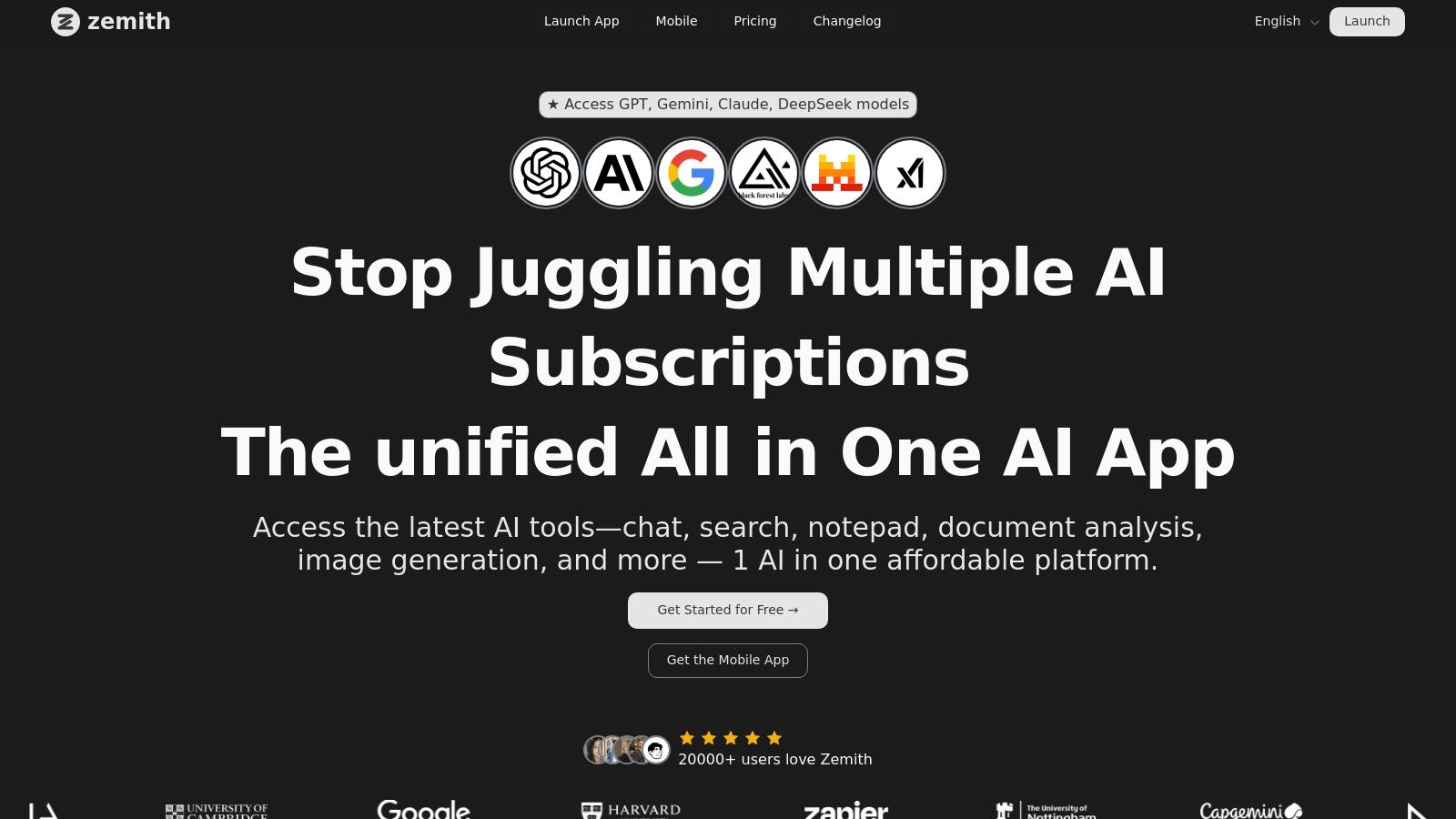 | Zemith 🏆 | Multi-model hub, Document Assistant, Smart Notepad, Image & Code tools, Live Mode | ★★★★☆ Fast, feature-rich, active updates | 💰 Free starter + credit model; saves on multiple subscriptions | 👥 Professionals, researchers, creators, teams | 🏆 One unified AI workspace replacing many point tools |